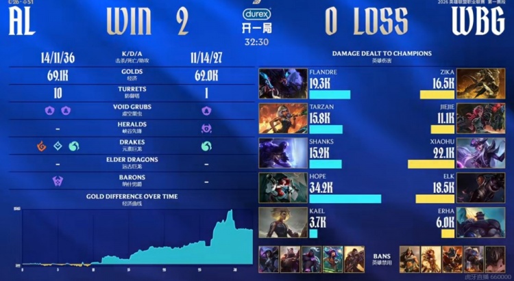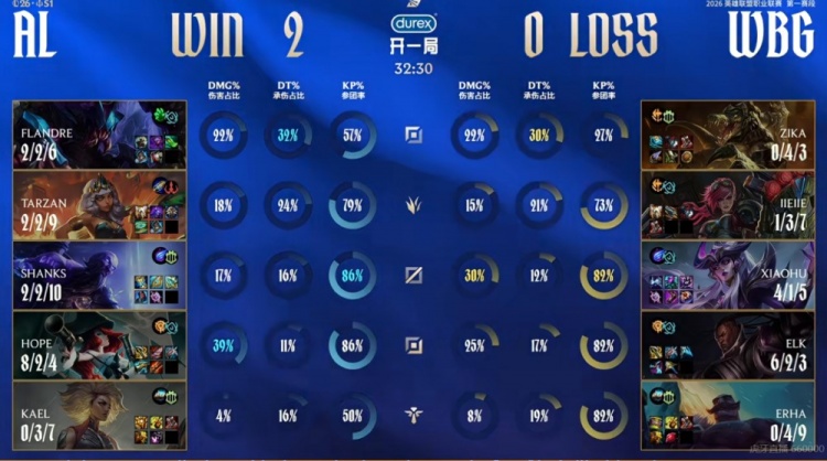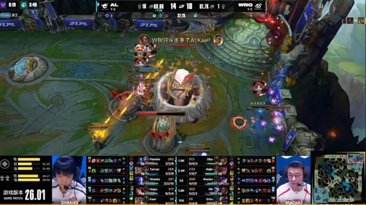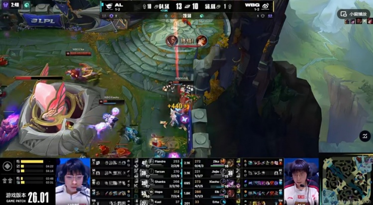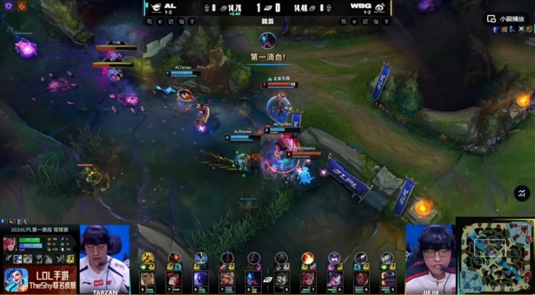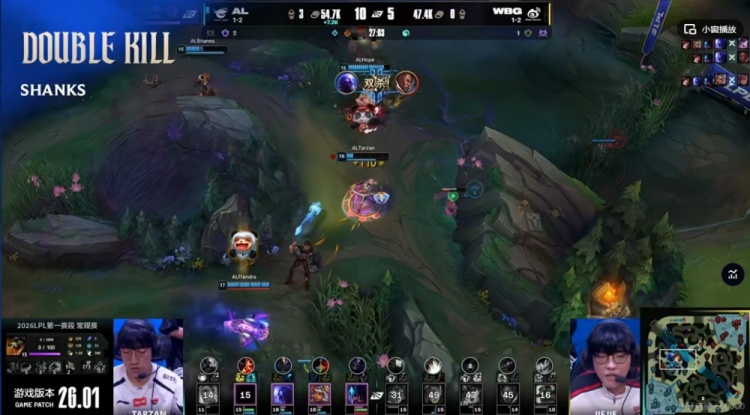 直播吧1月20日讯 2026年LPL第一赛段今天继续,今天的首场比赛是两支1-2队伍的较量!AL对阵WBG!