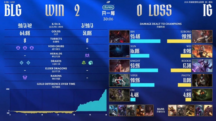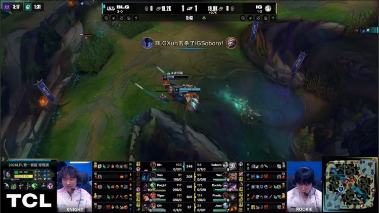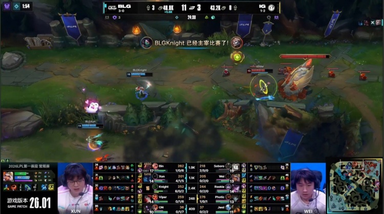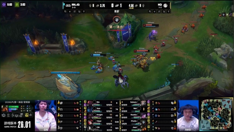 直播吧1月20日讯 2026LPL第一赛段组内赛继续进行,今日焦点之战BLG横扫iG!