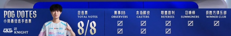 【23:58】Jwei泰坦上路河道草丛做视野被BLG三人逮捕,随后knight阿卡丽上路再杀Soboro亚恒,knight战绩来到6-0-2。