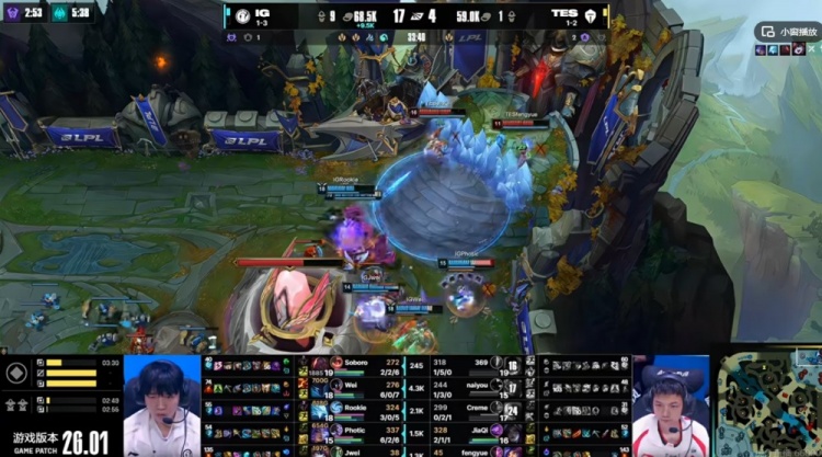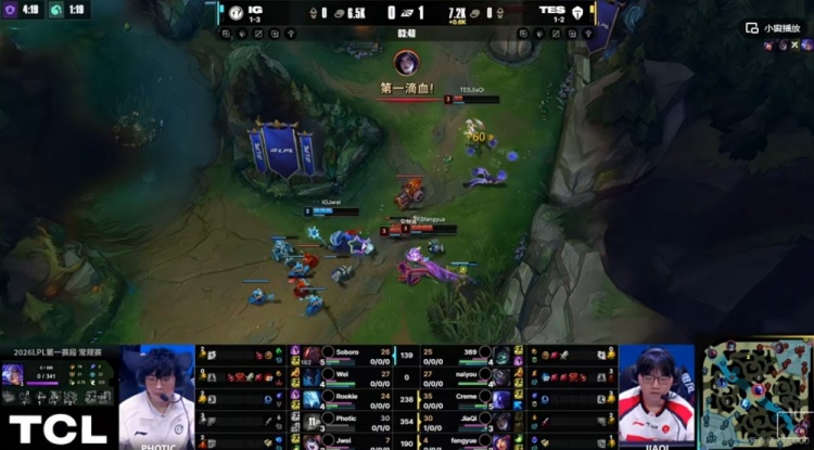 直播吧1月21日讯 2026年LPL第一赛段今天继续,今天的第二场比赛是iG对阵TES!