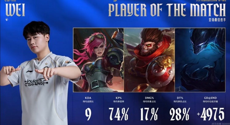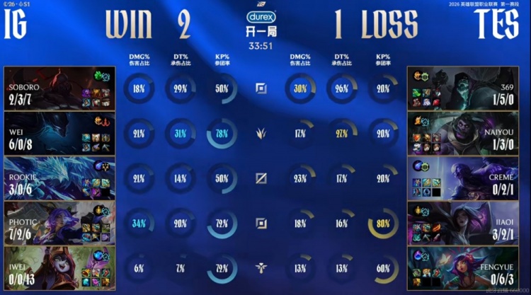 iG:上单Soboro、打野Wei、中单Rookie、下路Photic、辅助Jwei