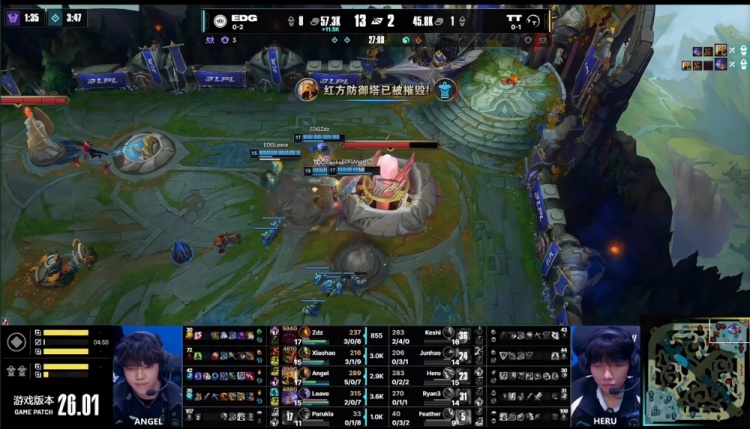 后期TT野区大火收汁,Angel沙皇三杀,EDG打出1换5团灭TT,一波推平基地先下一城。