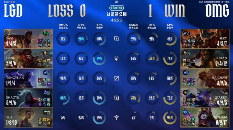 最终OMG上演惊天大逆转,鏖战46分钟拿下小局首胜。