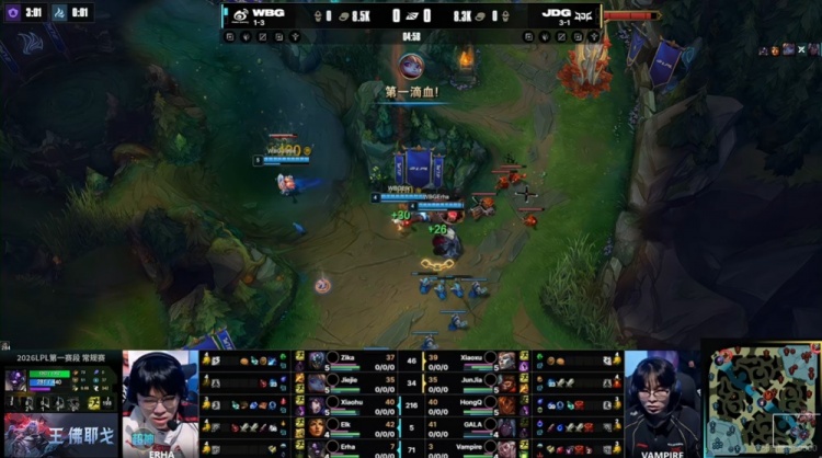 第一局:🎮JDG昨晚没休息好?血脉压制Jiejie抢龙完爆Junjia WBG赢首局