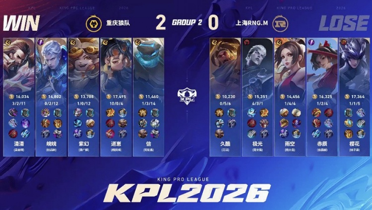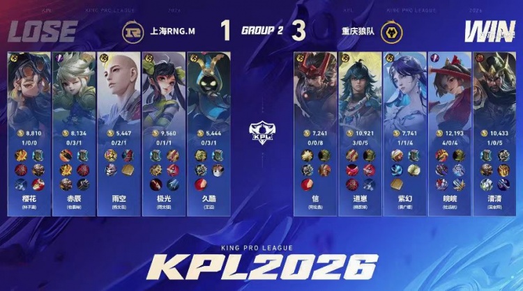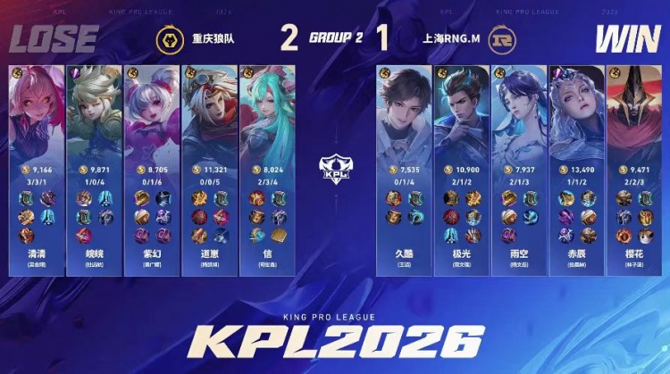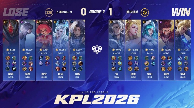直播吧1月25日讯 2026KPL春季赛本场比赛是由重庆狼队对阵到上海RNG.M!
