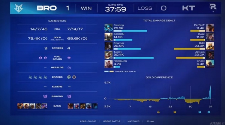直播吧1月25日讯 2026年LCK杯继续进行中,本周的最后一场比赛将是KT对阵BRO!