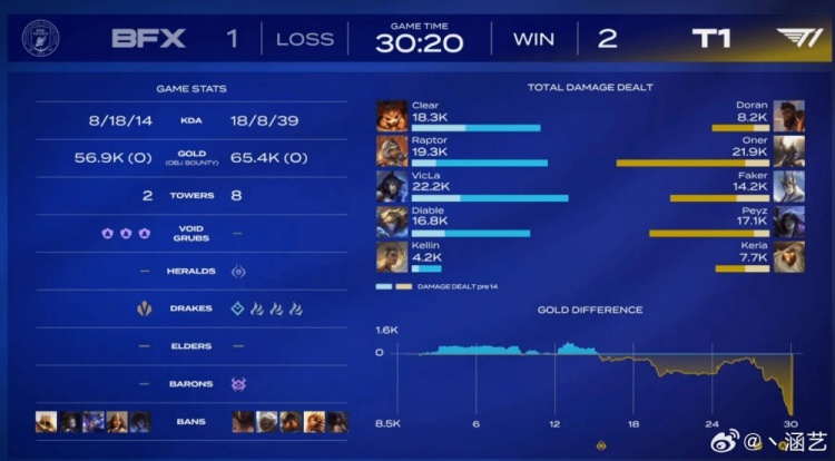 直播吧1月25日讯 LCK杯T1战胜BFX,赛后经纪人涵艺点评写道: