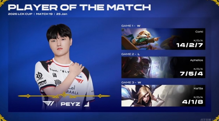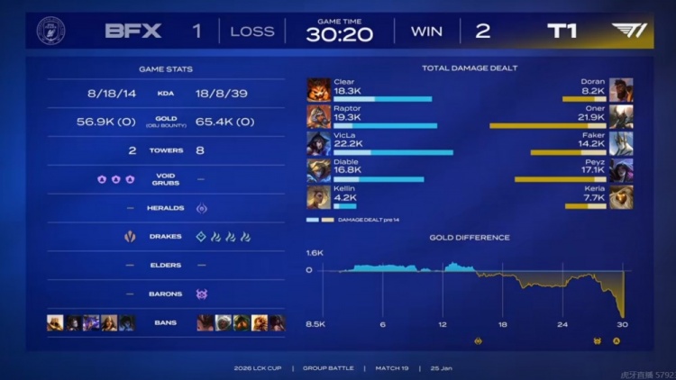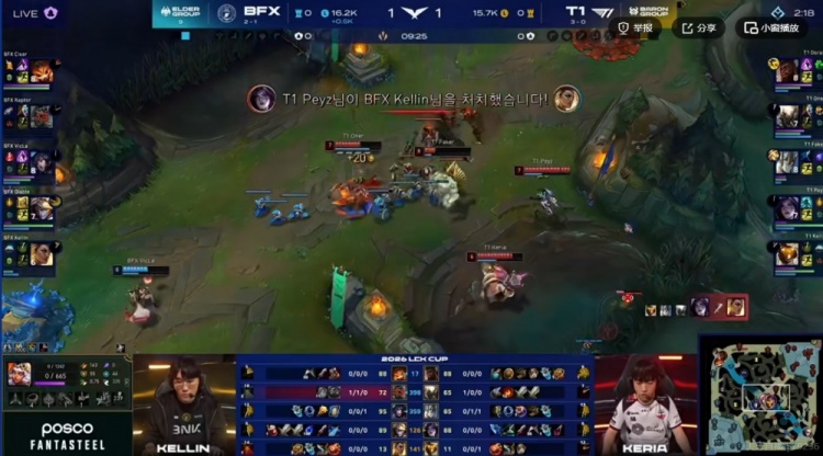 直播吧1月25日讯 2026年LCK杯继续进行中,今天首场比赛是T1对阵BFX!