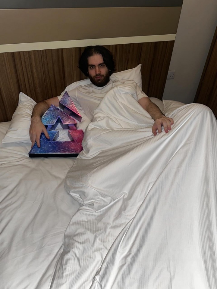 赛后Jame晒出与BLAST奖杯的床照,此前donk、Niko、s1mple、dycha、siuhy等选手也发布过类似的照片。
