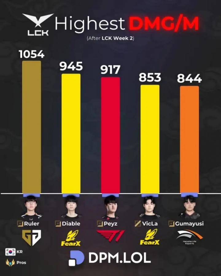 2026LCK杯分均伤害排行榜:Ruler第一,AD选手占据四席