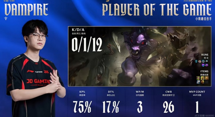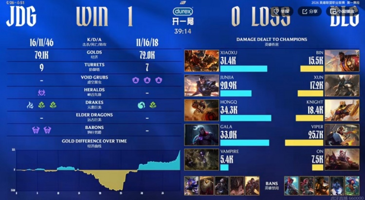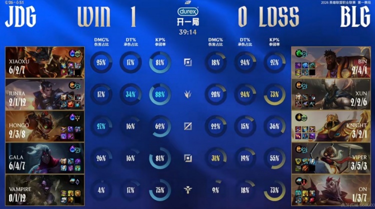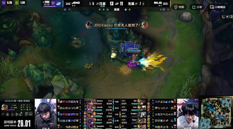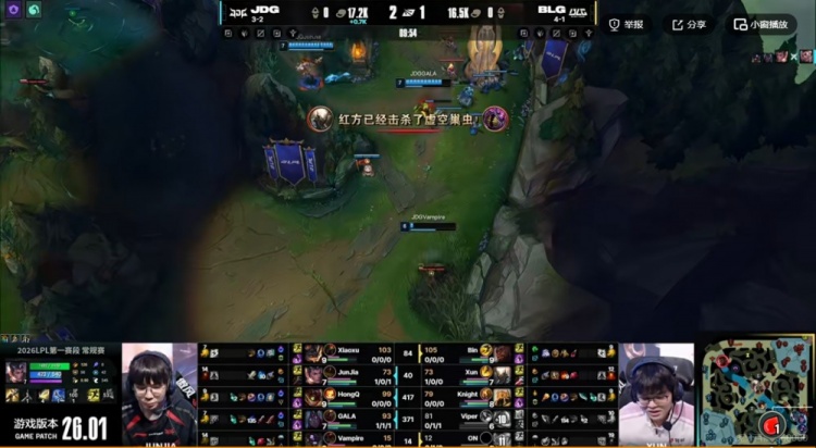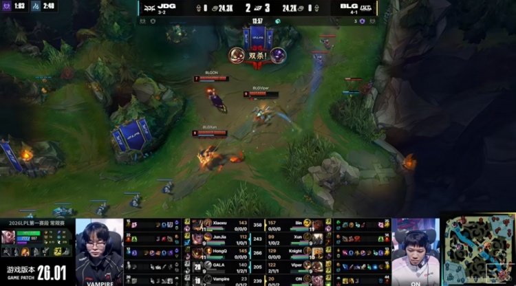 直播吧1月26日讯 2026年LPL第一赛段今天继续,今天的第二场比赛是BLG和JDG的二番战!