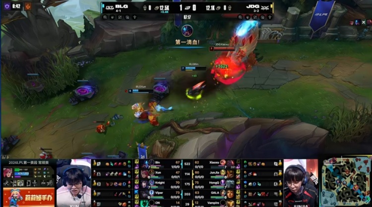 直播吧1月26日讯 2026年LPL第一赛段今天继续,今天的第二场比赛是BLG和JDG的二番战!