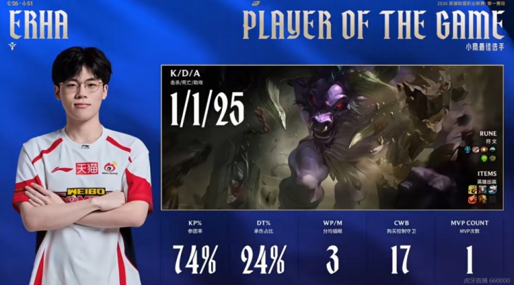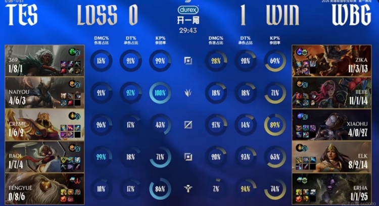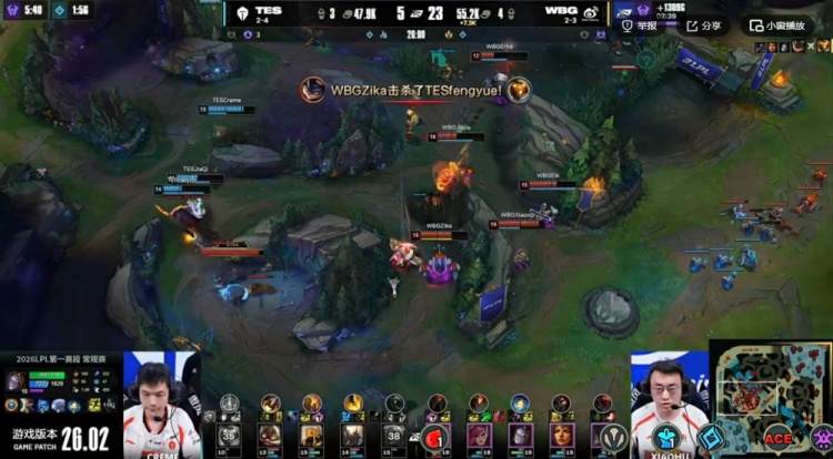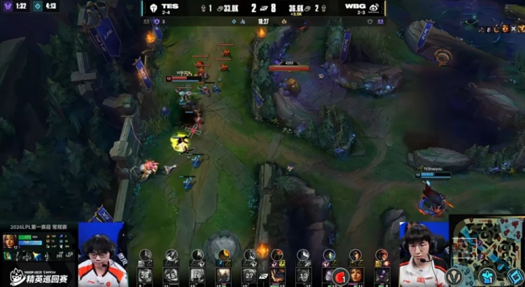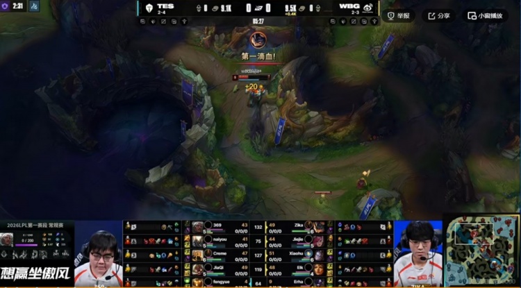 直播吧1月27日讯 2026年LPL第一赛段今天继续,今天的第二场比赛是WBG对阵TES!
