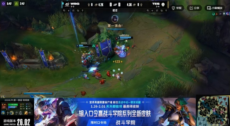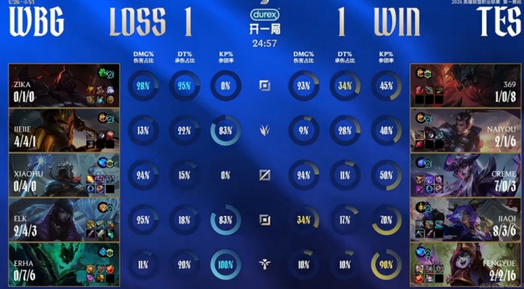 直播吧1月27日讯 2026年LPL第一赛段今天继续,今天的第二场比赛是WBG对阵TES!