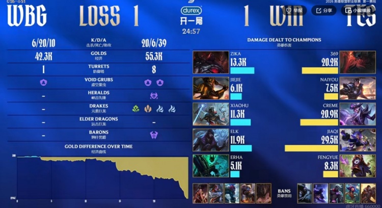 第一局:🎮虎醒啦!369安蓓萨被针对 Zika兰博Xiaohu发条带队WBG赢首局