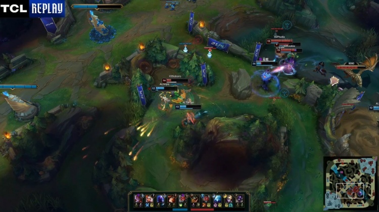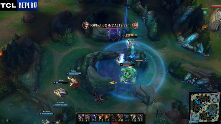 【5:59】河道团战,Kael女坦闪现近身被定在原地送Photic一血,随后iG杰斯轰掉王杰女枪,三角草Photic再杀Shanks瑞兹后击杀Tarzan奇亚娜收尾,iG打出2换4。