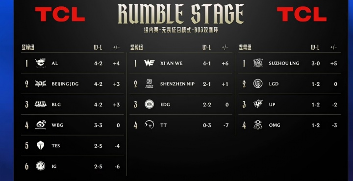 直播吧1月27日讯 今日LPL三场赛事结束后,官方给到了三个组别的积分榜单,TT战队昨日不敌WE后已经两负WE和EDG,大场战绩为0胜4负小场1胜8负。