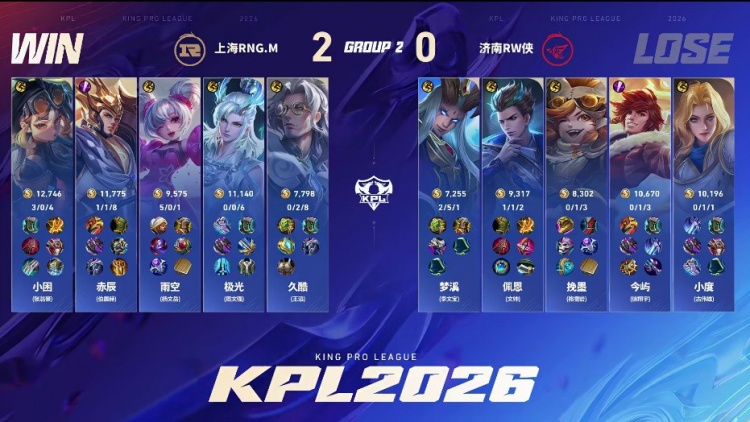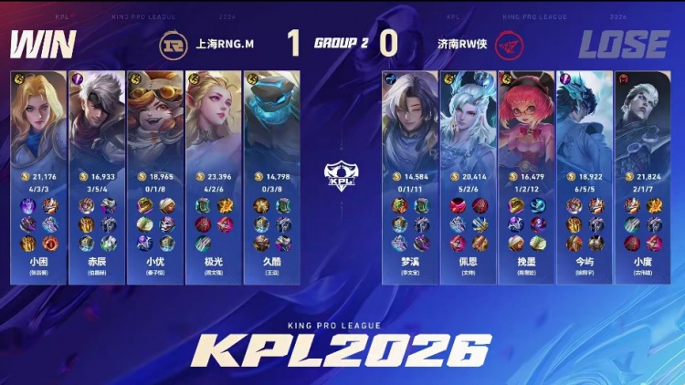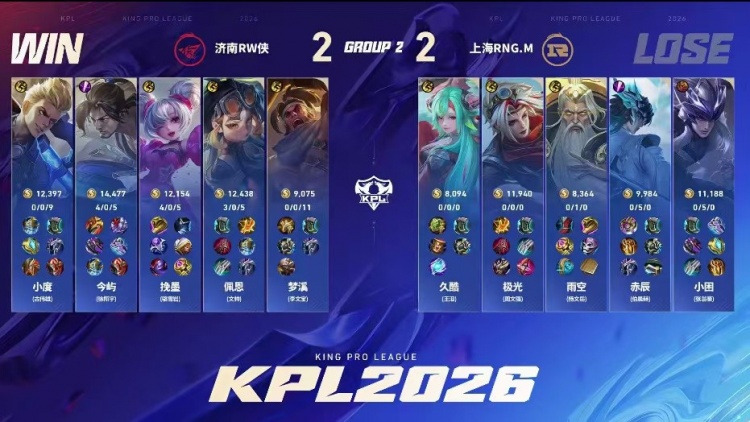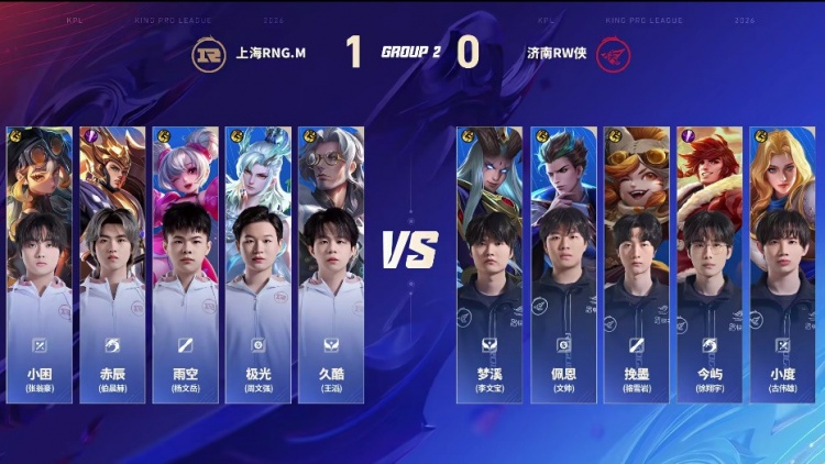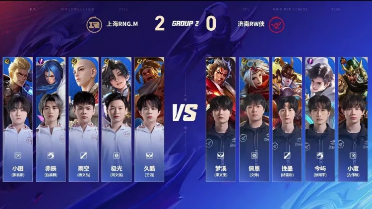 直播吧1月28日讯 2026KPL春季赛本场比赛是由济南RW侠对阵到上海RNG.M!
