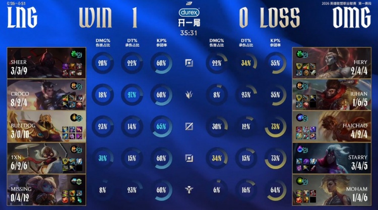 直播吧1月28日讯 2026LPL第一赛段组内赛继续进行,今日涅盘组第二场比赛由OMG对阵LNG!