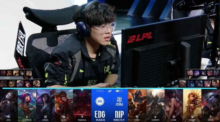中期Guwon潘森再找Leave被反杀,Guwon战绩来到0-3-3。小龙团Care阿卡丽开大进场直接被融化,NIP中野阵亡送EDG大龙,EDG经济领先7k。