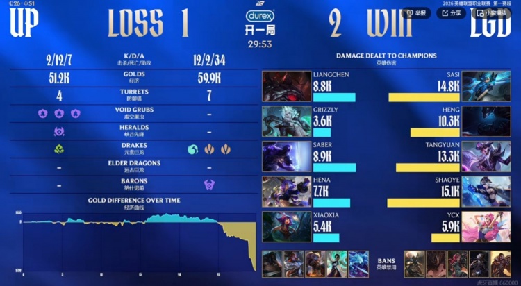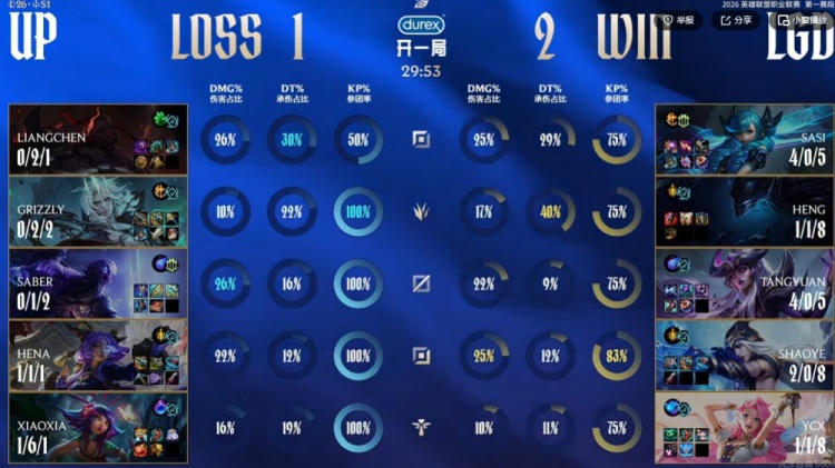 直播吧1月28日讯 2026年LPL第一赛段继续进行中,今天的首场比赛是UP对阵LGD!