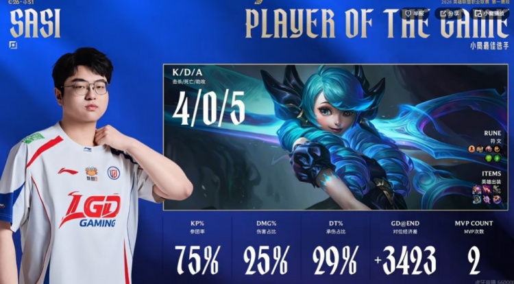 28分钟下路团sasi格温无人可挡直接开着W输出赶人,Liangchen塞恩被打残,草丛里埋伏的xiaoxia妮蔻只大了一个啊!而且格温有金身啊!没人管的Tangyuan辛德拉+Shaoye艾希再次打出暴力输出收割残局,这波LGD打出0换5团灭UP,从下路一波结束比赛!