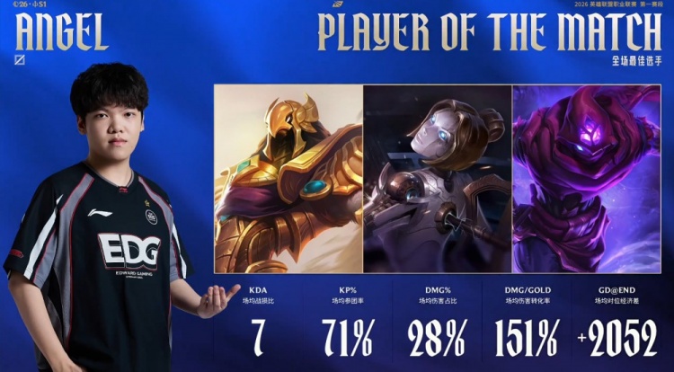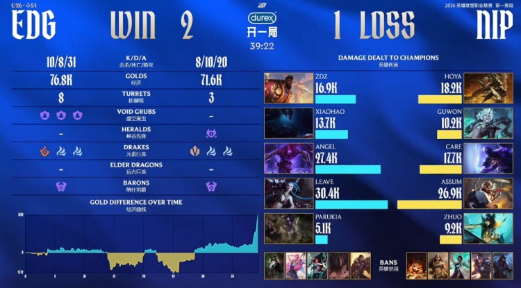 直播吧1月28日讯 2026LPL第一赛段组内赛继续进行,今日坚毅组比赛由EDG2-1战胜NIP!