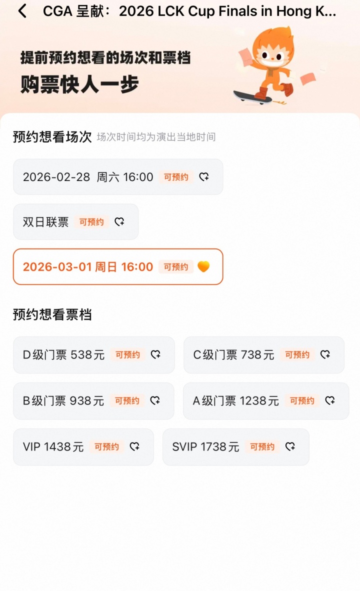 而值得一提的是,在全球演出赛事官方购票平台大麦上,LCK比赛的票价最低为538元,最高为1738元!