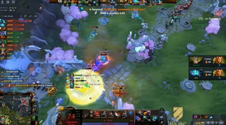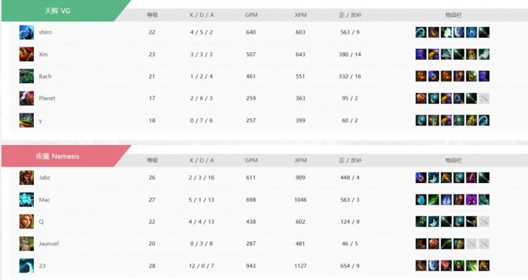 第四局Bach最后一手选出三号位潮汐,但是有前期优势中期双方对刷打不起来啊!潮汐刷钱慢的劣势暴露无遗了!中期开始Nemesis连续掌握局势让水人带盾,团战端shiro电魂完全打不动23水人啊!Nemesis稳步扩大优势继续给水人发育+带盾!最终的上路+高地团!VG一度找到机会但是水人一个大吹风躲掉了潮汐大招,Nemesis打出VG多人买活死,将比分再度扳平!