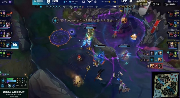 【16:16】NS拿下先锋+拆下一塔,KT则是上野合力中路顶塔强杀Taeyoon卡莉斯塔!