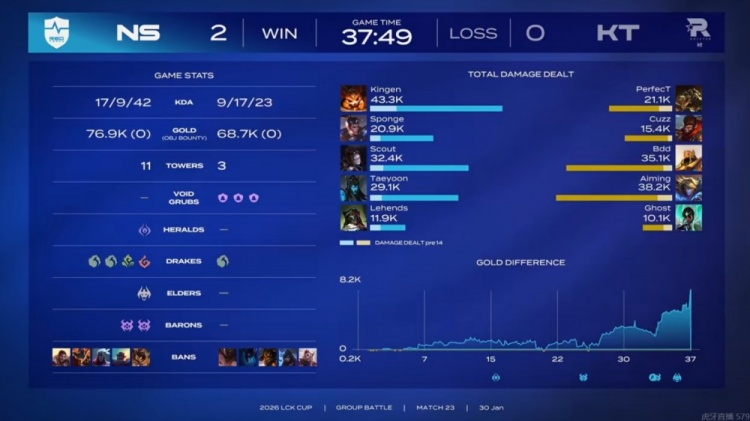 直播吧1月30日讯 2026年LCK杯来到超级周,今天的比赛将会是KT对阵NS!