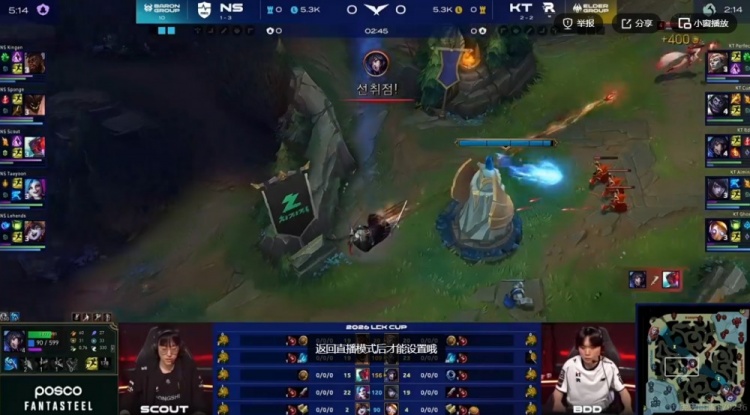 第二局:🎮KT是真不太行了?Scout发条远古龙加持高地一打四 NS拿赛点