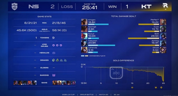 直播吧1月30日讯 2026年LCK杯来到超级周,今天的比赛将会是KT对阵NS!