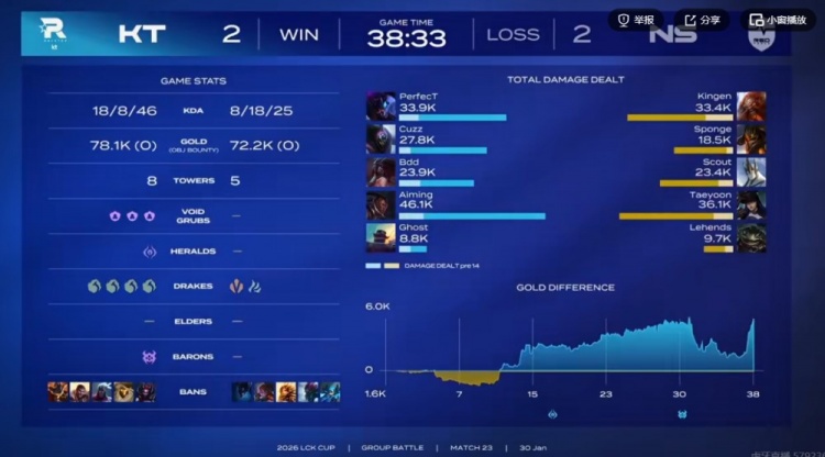 直播吧1月30日讯 2026年LCK杯来到超级周,今天的比赛将会是KT对阵NS!
