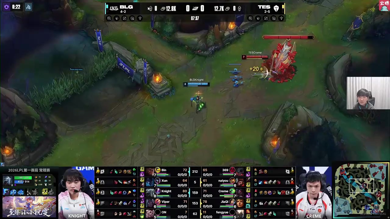JKL看小奶油绝活阿卡丽10-0游龙,TES 2-1战胜BLG当场鼓掌:坚哥阿卡丽游龙局!兄弟们加点油啊,打好一点后面都不用走骑士之路了!