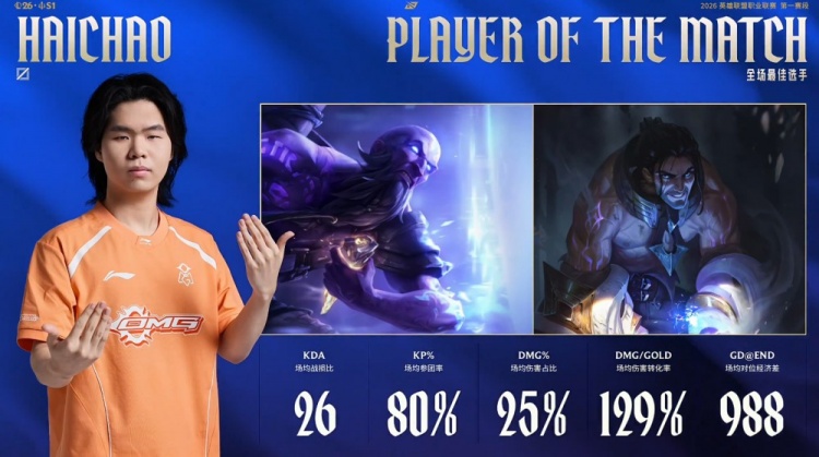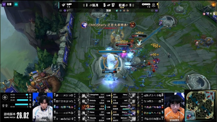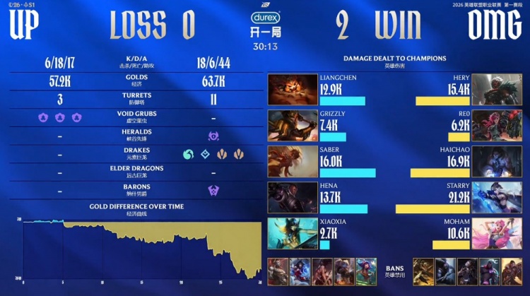 直播吧1月30日讯 2026LPL第一赛段组内赛继续进行,今日涅槃组比赛由OMG对阵UP!