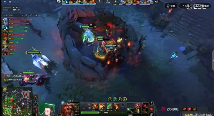 【26分钟】VG先开打肉山,双方第一波交出多个大招,NTS火猫先吃伤害阵亡,VG双大哥想追但是三核全被xNova杰奇洛冰住了!Ame的PA爆发伤害直接秒掉了shiro水人+Bach马尔斯,Xm哈斯卡也被留住!这波XG击杀对手三大哥!Ame的PA三杀!XG成功拿下二代肉山,Ame的PA带盾!双方经济差瞬间来到12K!