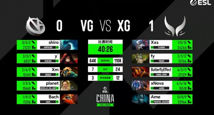 首局比赛VG给Xm选出中单哈斯卡对线压了NTS火猫,但是planet光法想帮中反而上路的Bach马尔斯遭重,Ame的PA从对线期开始就根本没人管啊!随后Xxs大鱼人带节奏,XG连续强杀shiro水人奏效!