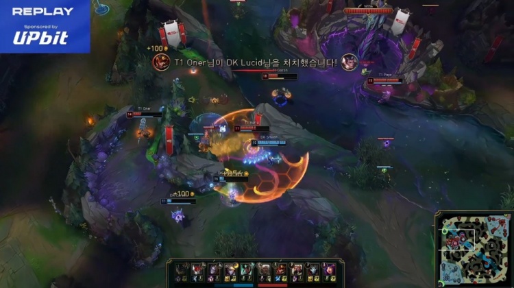 后期T1拿到炼金龙魂并在大龙处击杀DK三人,经济领先超过1W,随后推进中下,Peyz烬连续收割,T1推平DK基地先下一城。