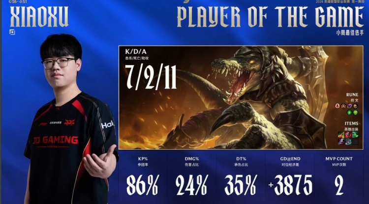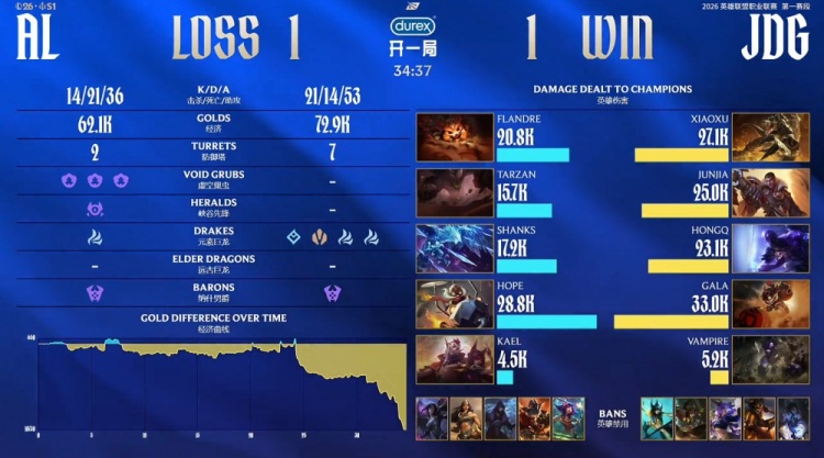 直播吧1月31日讯 2026LPL第一赛段组内赛继续进行,今日首场比赛由JDG对阵AL!