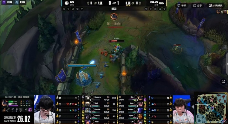 直播吧1月31日讯 2026年LPL第一赛段今天继续,今天的第二场比赛是iG对阵BLG!