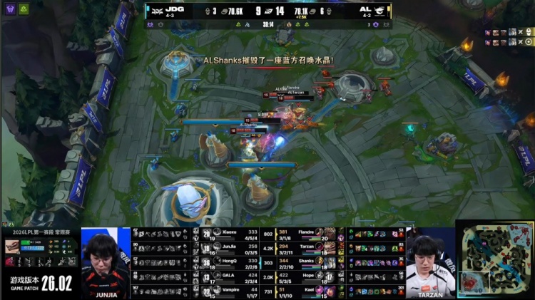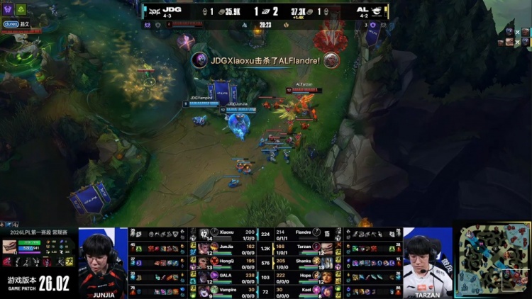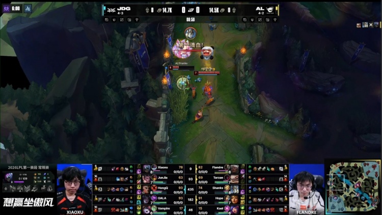 直播吧1月31日讯 2026LPL第一赛段组内赛继续进行,今日首场比赛由JDG对阵AL!