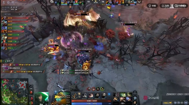 决胜局XG两条边路对线都不劣!Ame飞机是无解肥对线!中期Xxs伐木机先出道装备带队找节奏,一度拿下一万的优势!VG隐忍到了中期依靠Bach三号位朗戈出A杖和Xm电魂抽攻进场,一波上路反打0换4+电魂四杀打回劣势,还可以连续控下肉山!