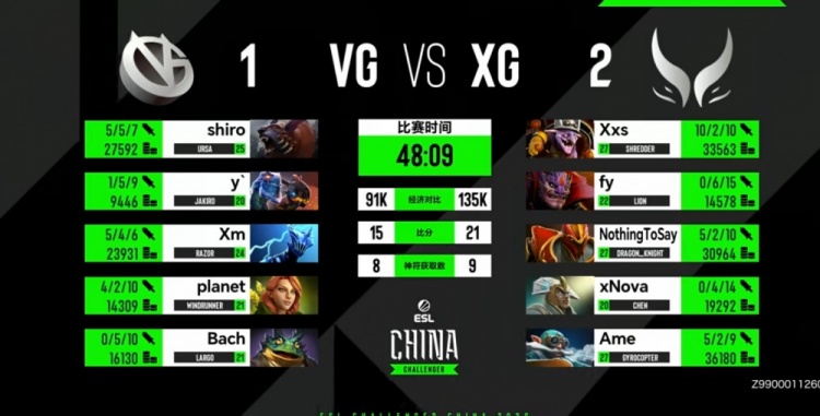 【46分钟】y队杰奇洛被抓买活死,XG拆掉中路高地之后转下,Xm电魂冲锋但是自己吃不住双大哥输出被强杀!没买活!XG拆完三路!想一波!正面Bach朗戈被秒交出买活但是没有伤害了!shiro拍拍熊倒下,XG拆完基地结束比赛,率先晋级本次ESL中国区挑战者的决赛!