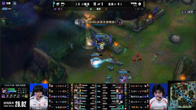 直播吧2月1日讯 2026LPL第一赛段组内赛继续进行,今日焦点之战由AL对阵TES!