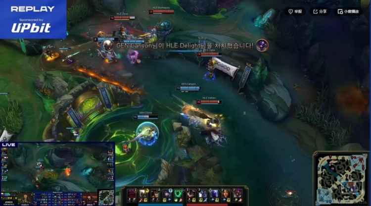 【17:40】Kanavi巨魔中路被开但是自己吸了一口没死!HLE反打强杀掉了GEN下路组,但是追击过深,Gumayusi希维尔抗塔抗没了啊!残局Canyon潘森大招找到了Zeus兰博完成单杀!最终竟然是2换2的局面吗!