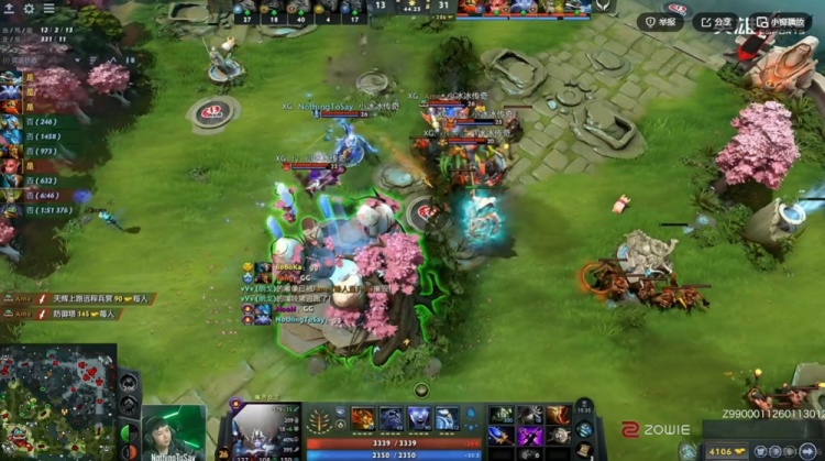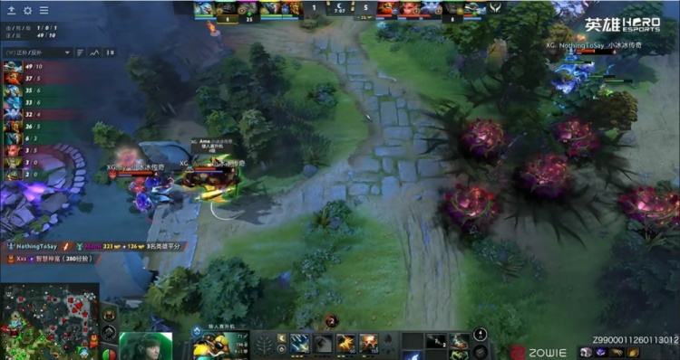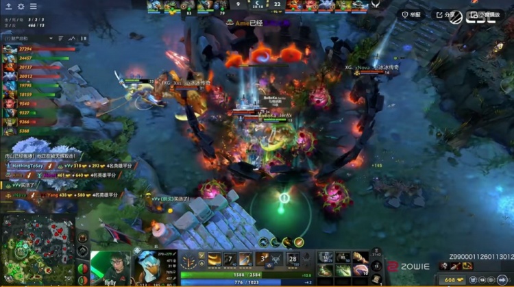 第四局XG在两条边路打出优势!前期节奏不断啊!YB则是强行拖flyfly凯的发育!XG先拿肉山但是NTS女王被逮捕没法推进,双方持续发育到了38分钟,YB抱团想打肉山结果被Xxs马尔斯框了三个+NTS女王大招补AOE伤害!这波YB瞬间倒了三个!交出买活但还是大败!