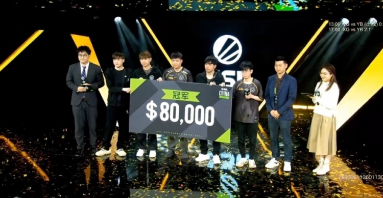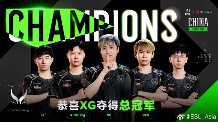 XG拿下肉山准备一波结束,高地团三四五号位打出完美配合再秒flyfly凯!正当比赛可能要结束之际Boboka猛犸站了出来,两次大招把XG双大哥拱回泉水强杀守住了这一波!最后的下路团战YB双大哥贴脸没能强杀Ame飞机,XG三核残血完成收割!最终这波团XG团灭YB结束比赛,夺得了本次ESL挑战者中国区的最终冠军!