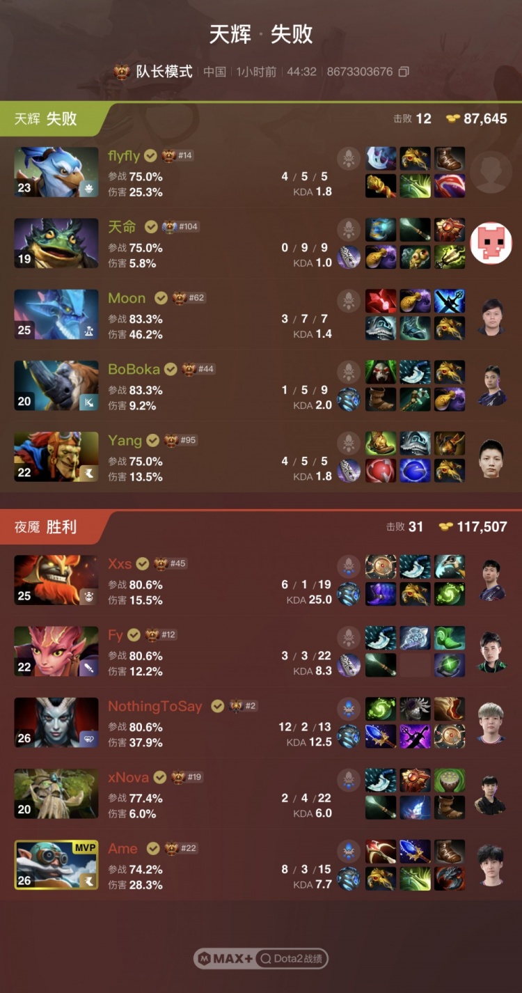 天辉YB:Yang蝙蝠骑士、天命 朗戈、MooN拉席克、flyfly凯、Boboka马格纳斯