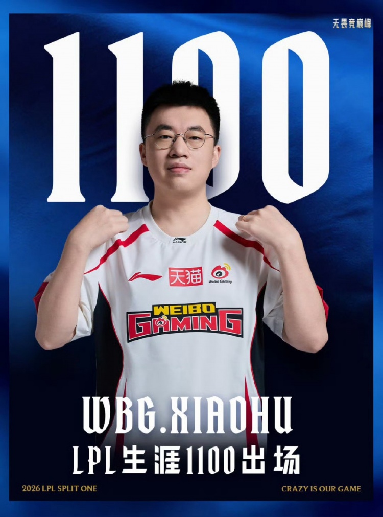 >里程碑:Xiaohu达成1100出场成就 LPL第2位选手!